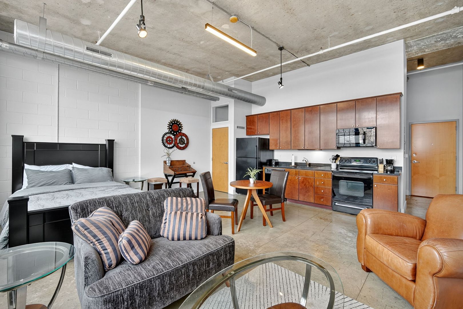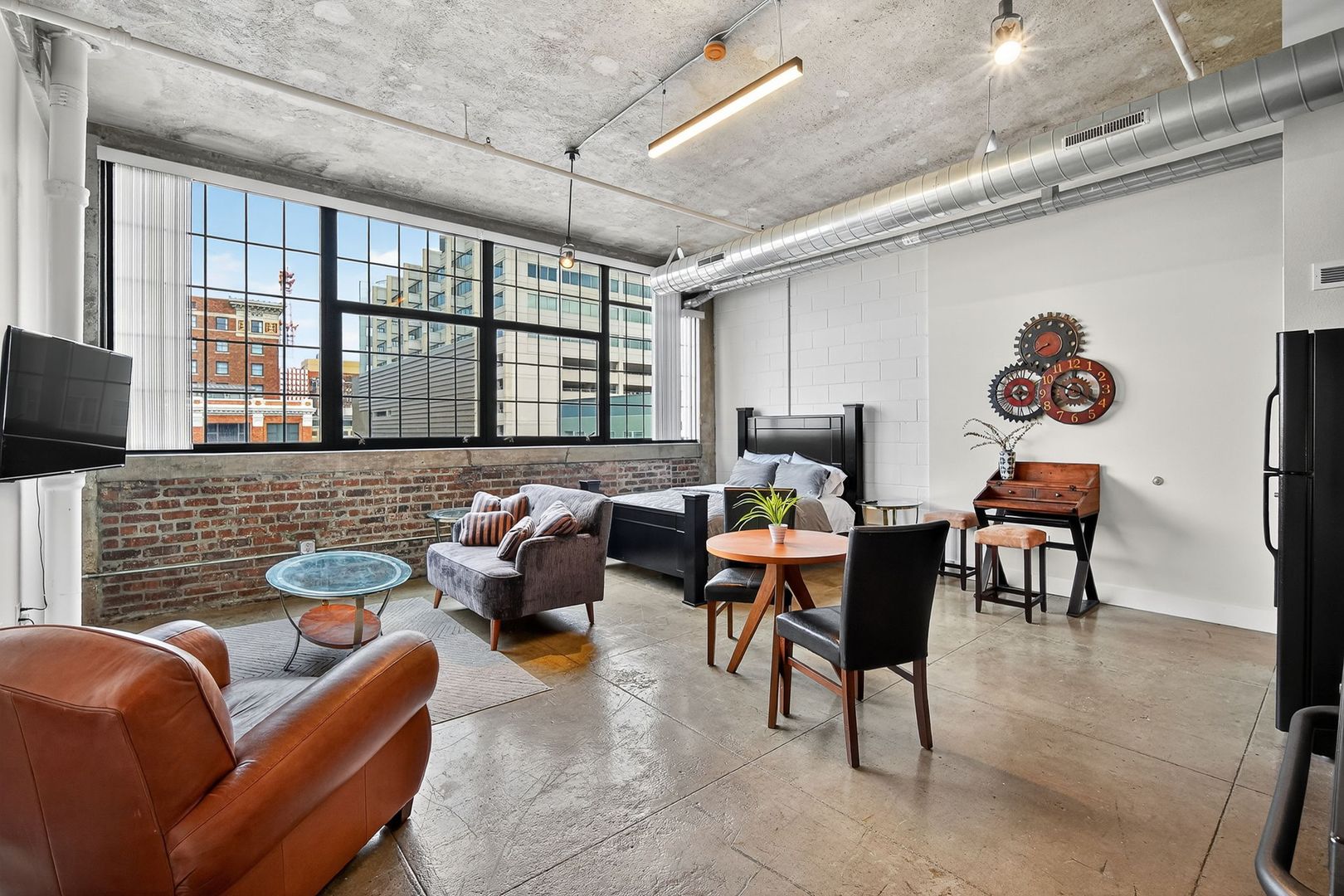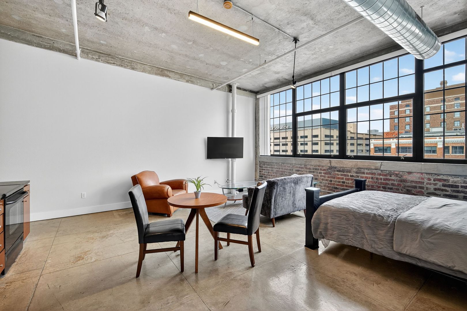 Beautiful furnished studio apartment with exposed brick, high ceilings and tons of natural daylight!
