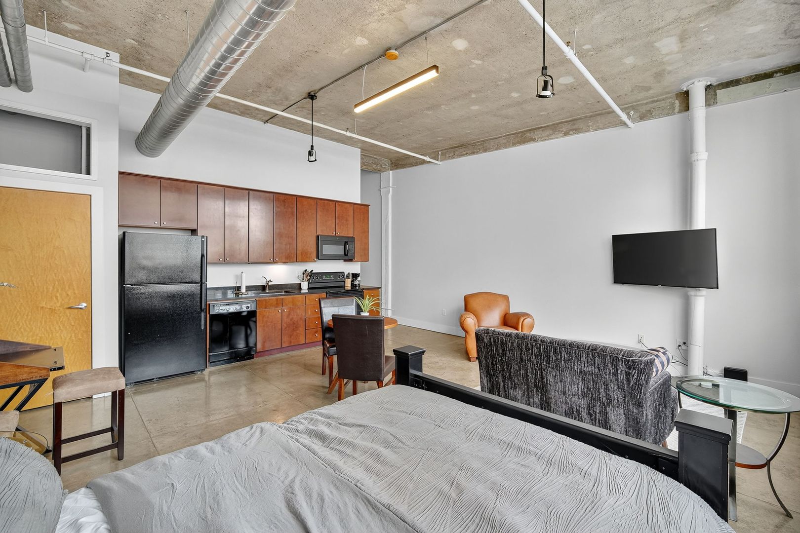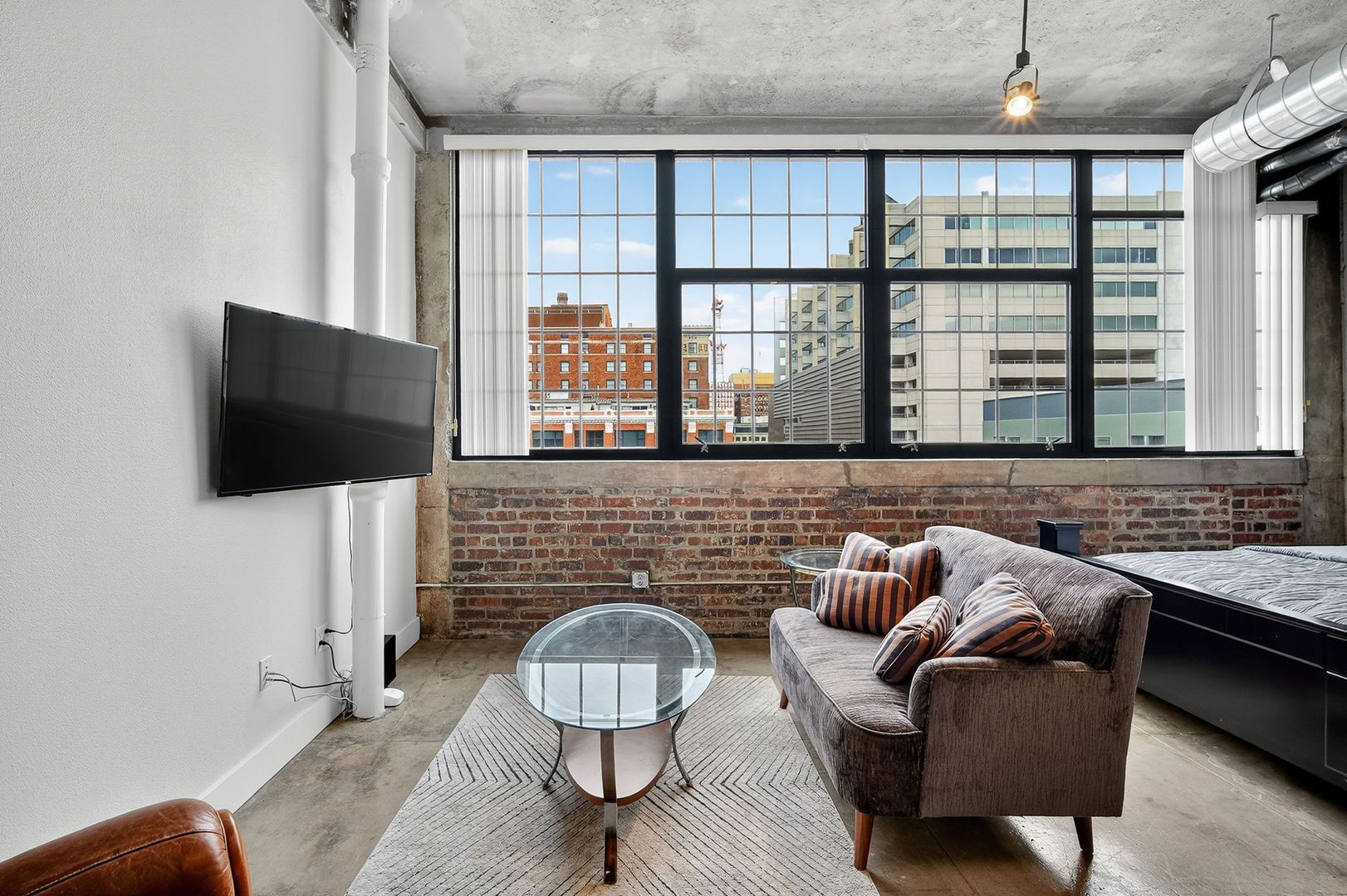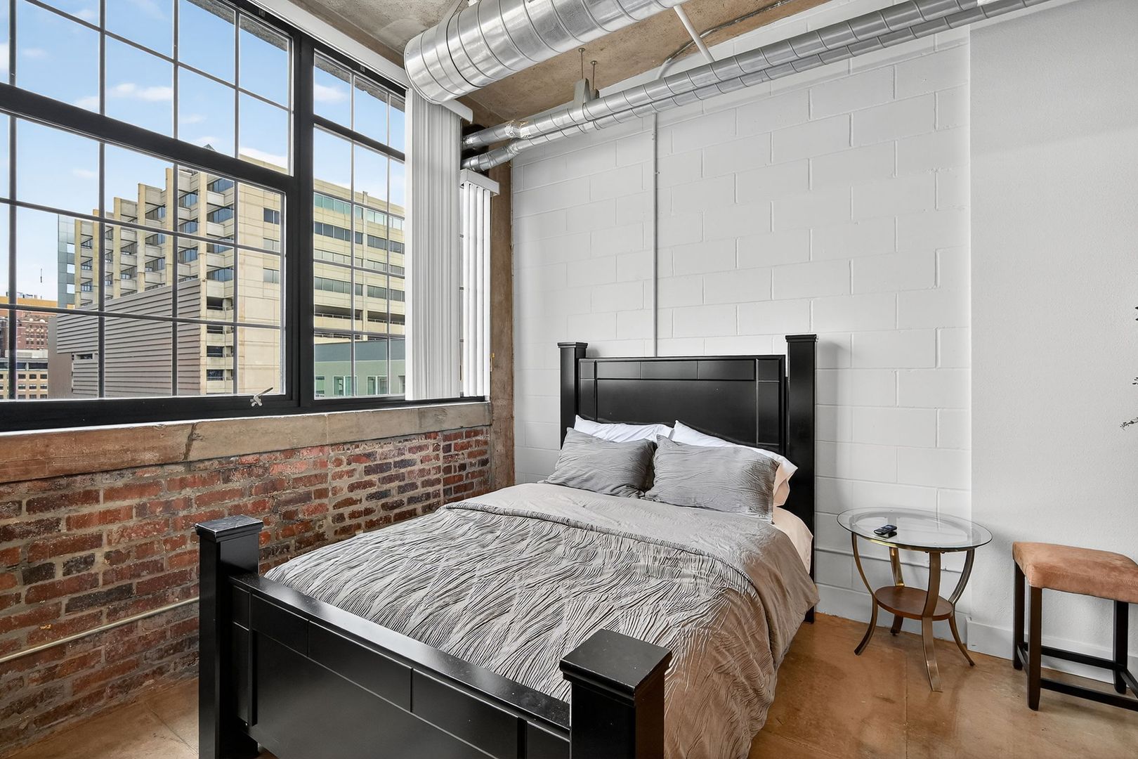 Beautiful furnished studio apartment with exposed brick, high ceilings and tons of natural daylight!